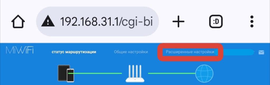 Переходим по адресу http://192.168.31.1/ (обязательно с того устройства к которому подключен роутер)