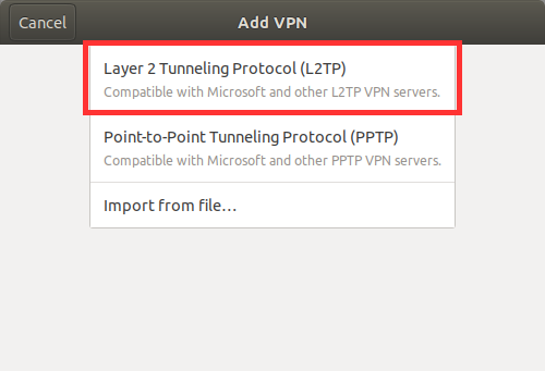 Выберите «Протокол туннелирования уровня 2 (L2TP)»