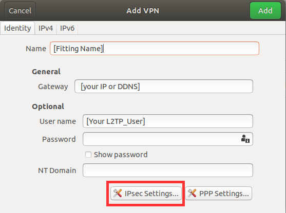 Пожалуйста, заполните запрашиваемую информацию и нажмите «Настройки IPsec», чтобы установить настройки для соединения IPsec.